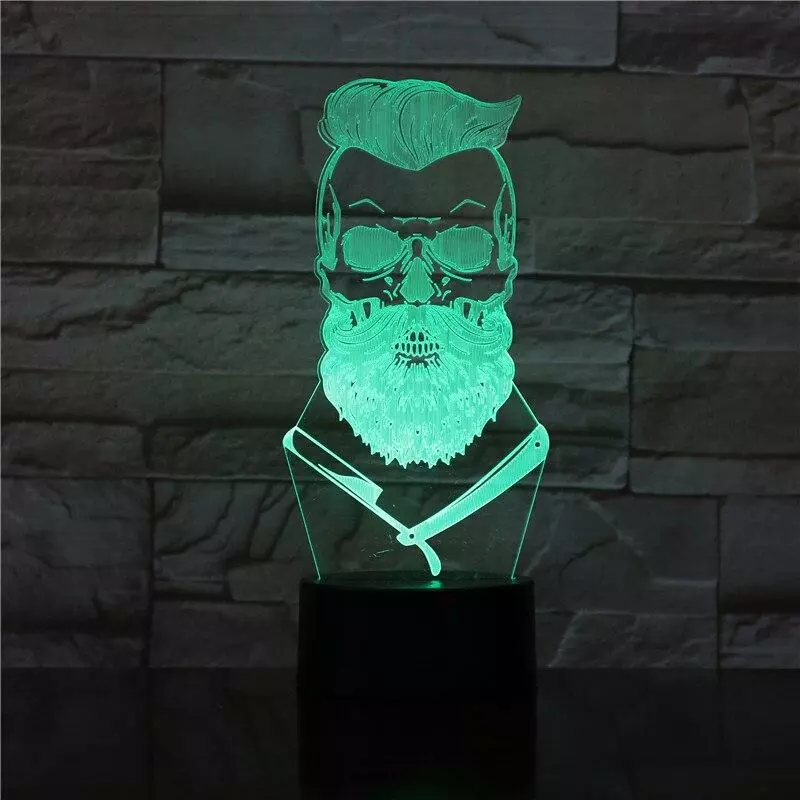 3D світлодіодний світильник Barber Skull. LED світильник для барбершопу, 7 кольорів