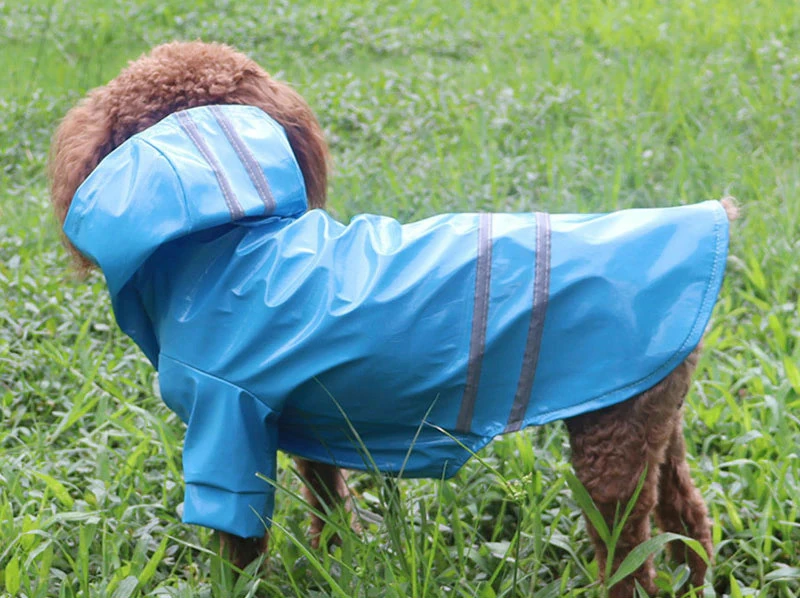 Зручний дощовик RESTEQ стане в нагоді домашньому улюбленцю в дощову погоду. Наряд зшитий із зносостійкого, непромокаючого матеріалу зі світловідбиваючими вставками, що дозволяє гуляти з собакою навіть у темну пору доби. Дощовик закриває лапки та живіт собаки, захищаючи його від дощу та бруду. На животі знаходяться застібки, які дозволяють швидко та легко надіти комбінезон на тварину.