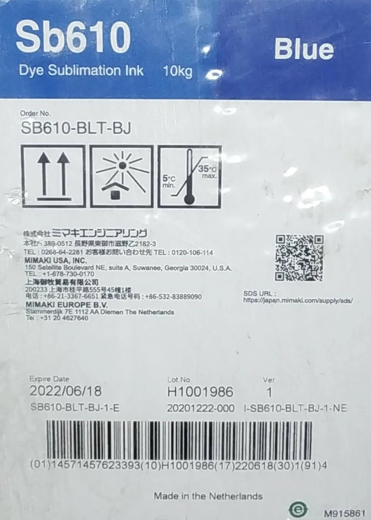 Чорнило Mimaki SB610 Blue 10 кг. Чорнило Mimaki SB610-BLT-BJ, термін придатності до 18.06.2022. Для текстильного друку на