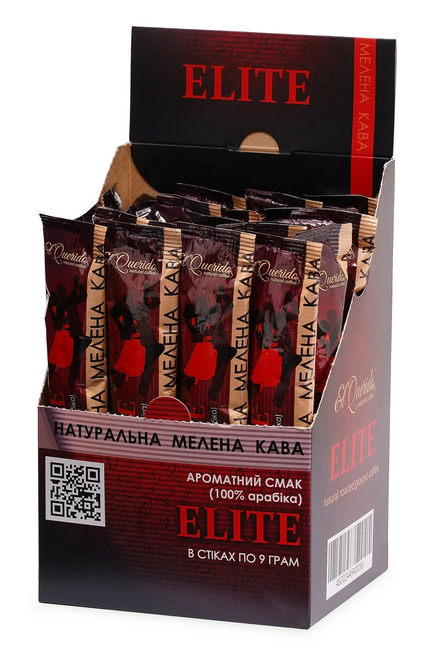 Кава мелена El Querido Elite 25 стіків в боксі по 9 г. Кава арабіка 100%. Суміш з високоякісних сортів бразильської і