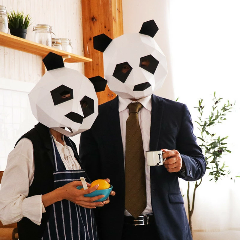 Маска панди RESTEQ з картону, ручне збирання. Голова панди паперова для дорослих
