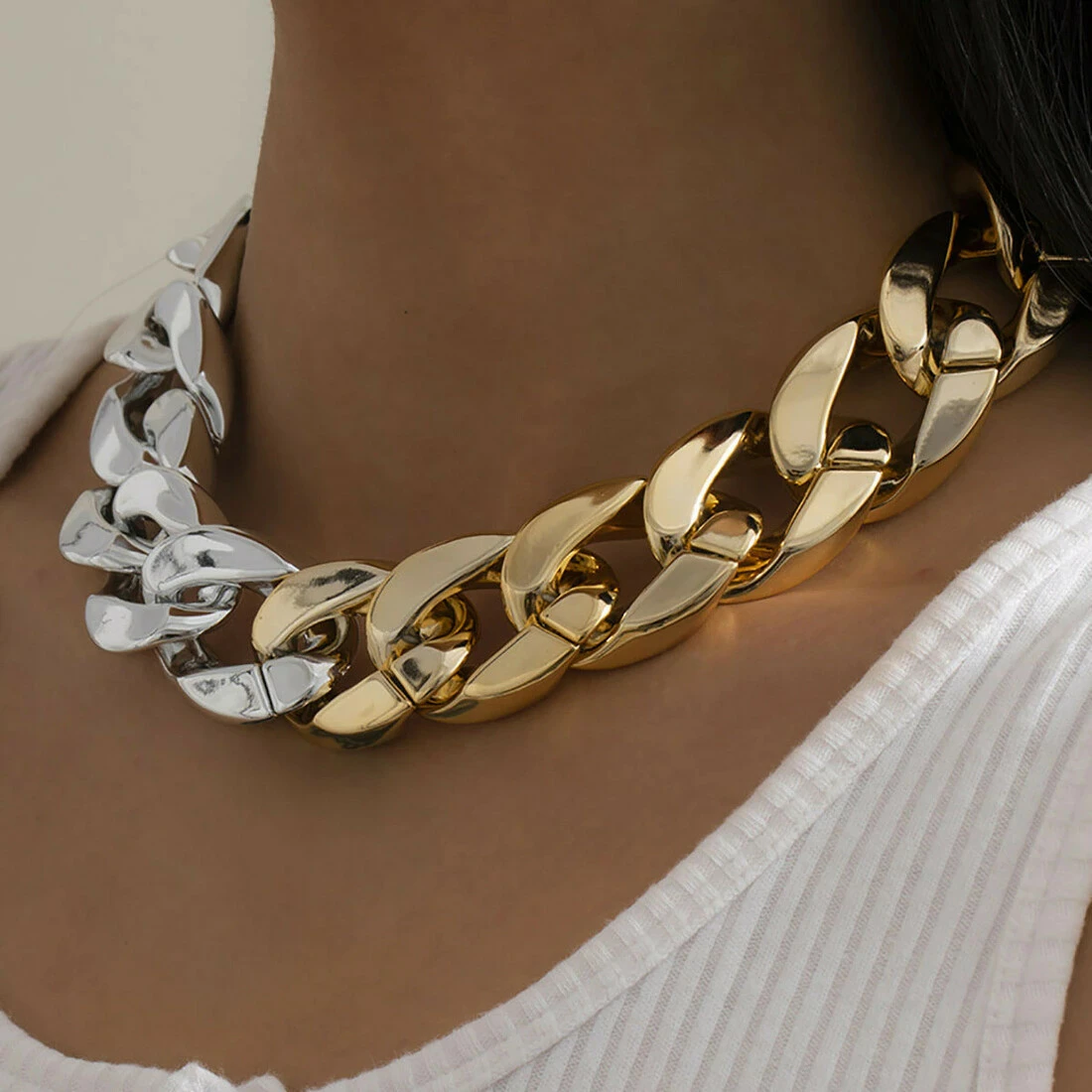 Намисто RESTEQ ланцюг золото-срібло. Ланцюг на шию. Масивне намисто у вигляді ланцюга. Пластикові намисто. Біжутерія під золото