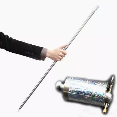 Трюк полягає в тому, що спочатку ви тримаєте складену тростину в руці непомітно для інших, потім тиснете на кнопку і за секунду вона розсувається і здається, що вона з'явилася з повітря!